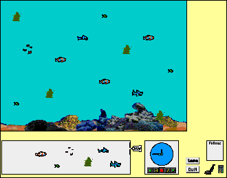 simulation objects. We click on one of the fish in the game board. KidSim