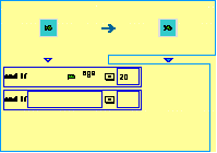 The final thing we have to do is have a baby fish turn into a real clown fish when it is old enough. So we'll create a rule to do that. (That's the universal answer to solving problems in KidSim: create a rule.) We click on the baby fish's New Rule button, which puts the system in record mode. Again, we aren't interested in the pattern matching part of the rule, so we leave the spotlight alone. But this time we want to test one of the baby fish's properties. Specifically, we want this rule to apply only when the baby fish becomes 20 (weeks) old. We click on the triangle under the left side of the rule, causing a property test area to appear: