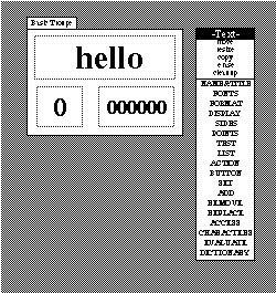 In its current prototype form, the Rehearsal World contains 18 primitive performers, each of which responds to a standard set of 53 cues and an average of 15 cues particular to that performer. To understand what this means, imagine a BASIC with a thousand reserved words. This complexity would be intolerable without a hierarchical organization and a simple way for the designer to browse that organization. The Smalltalk-80 system provides a window, called a Browser (see Figure 3), whose visual structure reflects the hierarchical organization of the objects and methods in the system. In the Rehearsal World, functionality is organized around performers grouped together into troupes; the cues that each performer understands are grouped into categories. The result is that designers never have to scan too much information at a time, and, because each level in the hierarchy has a different screen appearance, they never lose track of where they are in that hierarchy.